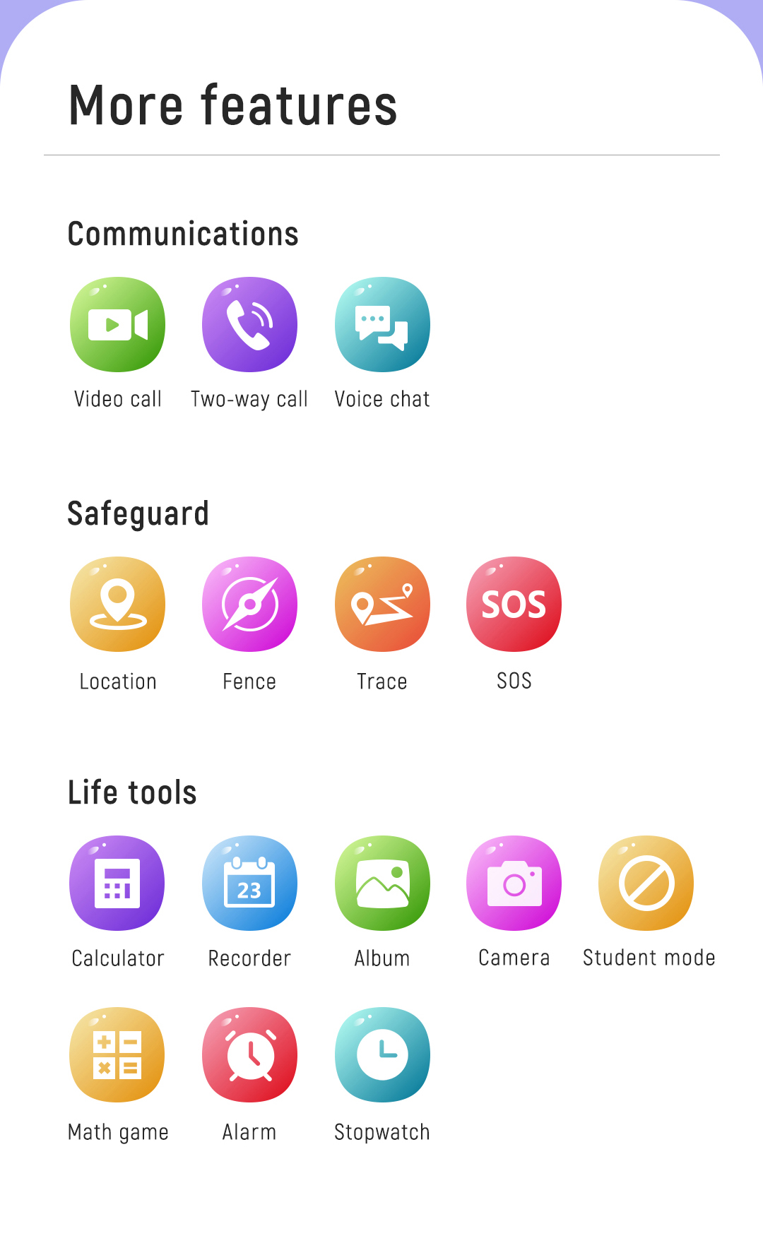 Location / Video call / Two-way call / SOS...